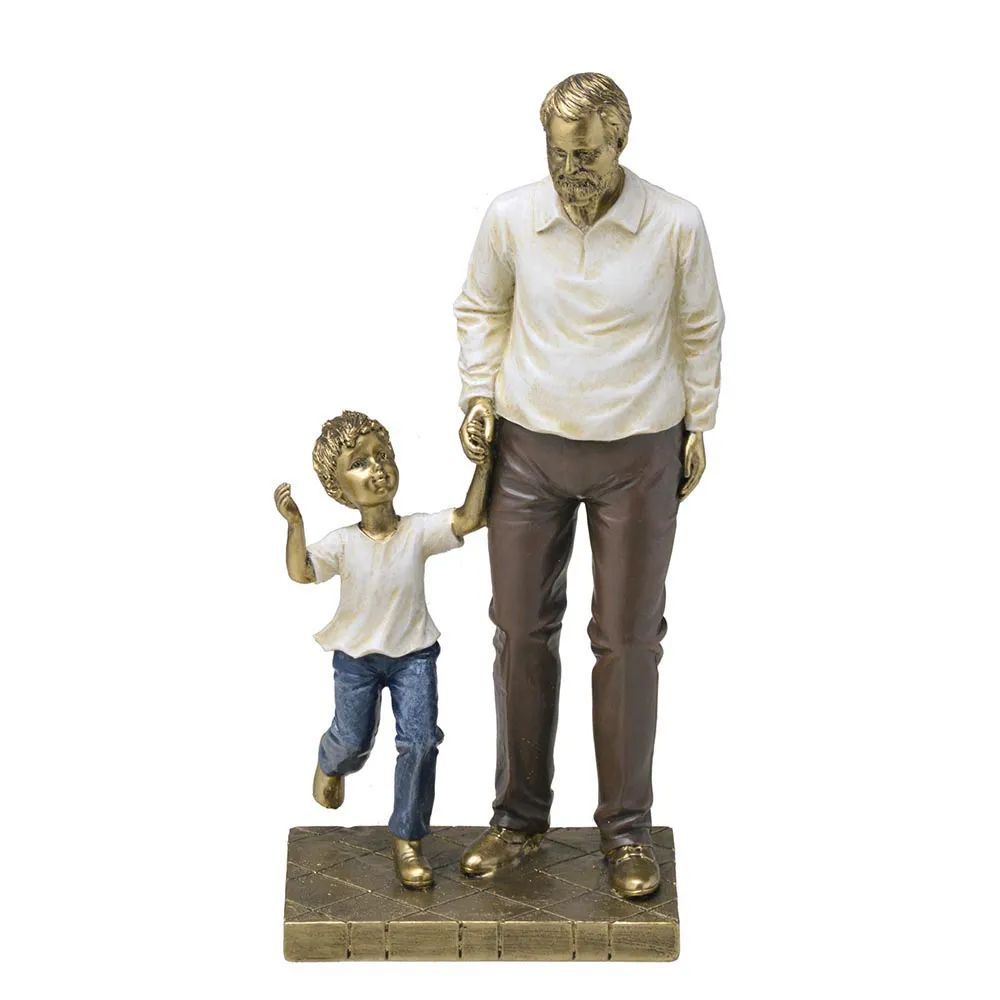 Estatueta Avô Com Menino Decorativo