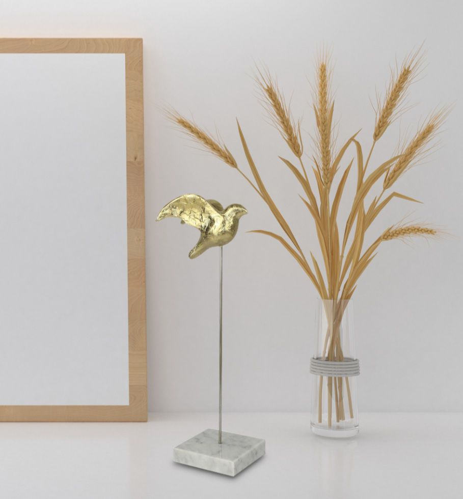 Pássaro Alto Pequeno Com Base de Mármore - Dea