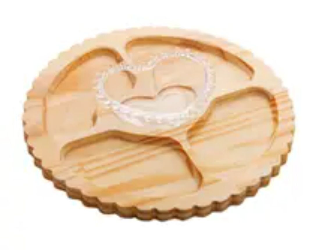 Petisqueira Madeira Pinus C/ Bowl Coração Cristal