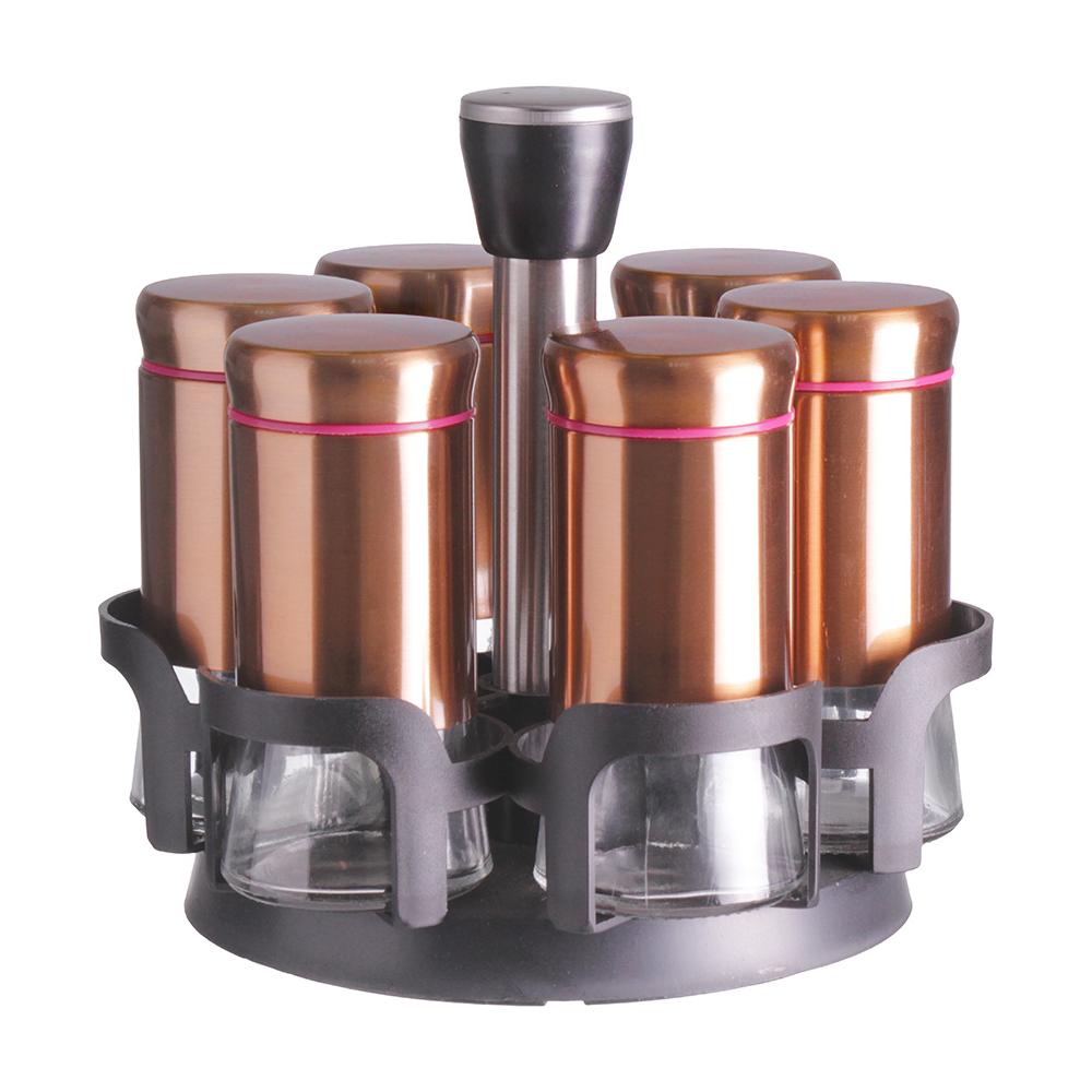 Porta Condimentos Giratório c/ 6 potes Vidro Inox