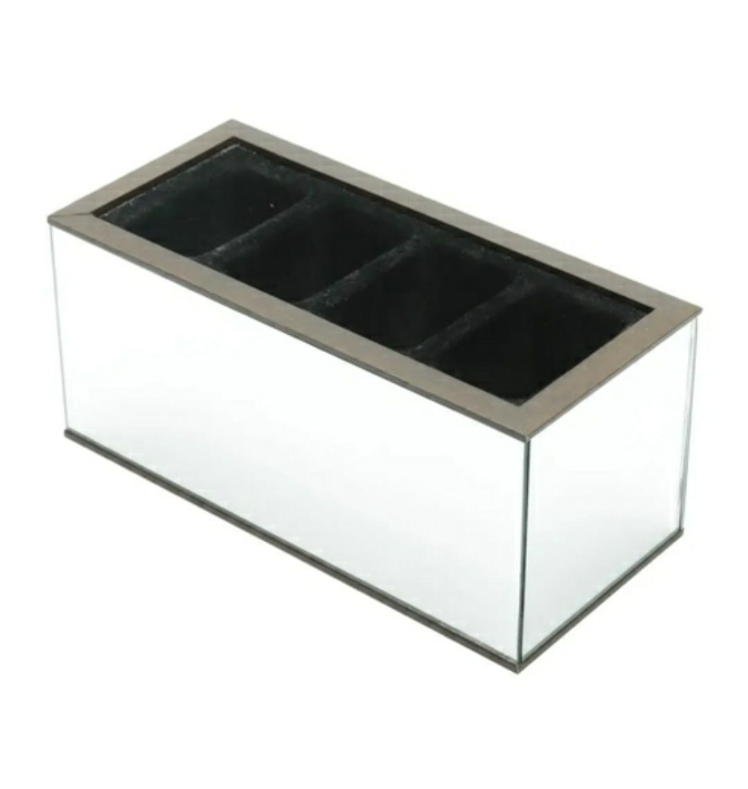 Porta Controle Madeira 4 Divisórias C/ Espelho O Porta Controle Espelhado 4 Divisórias em Madeira Woodart da Rojemac é ideal para mantém sua casa mais organizada, podendo ser utilizada na sala ou no quarto para organizar com praticidade e visibilidade os controles de tv, ar condicionado e outros.
