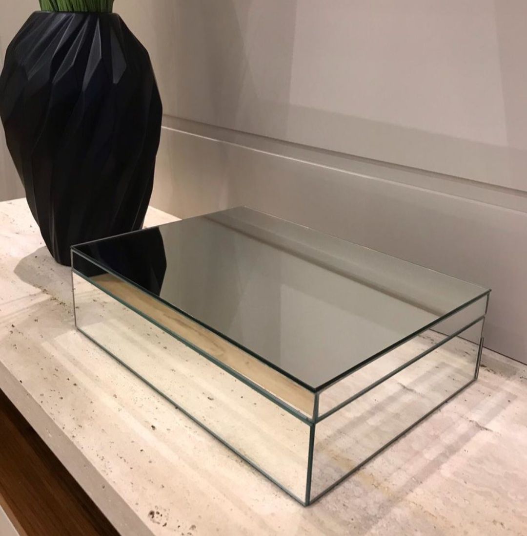Porta Joias Espelhado feito de MDF e revestido em espelho, com seu interior aveludado, ideal para fazer o armazenamento correto e adquado de suas joias, e ainda levar mais charme para decoração do seu ambiente.
