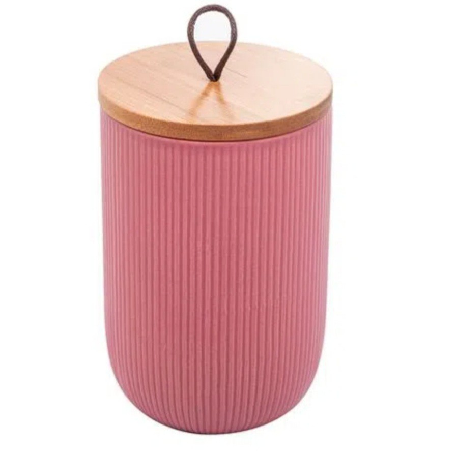 Potiche de Cerâmica C/ Tampa em Bambu e Pegador de Corda Lines Rosa 10x10x15cm