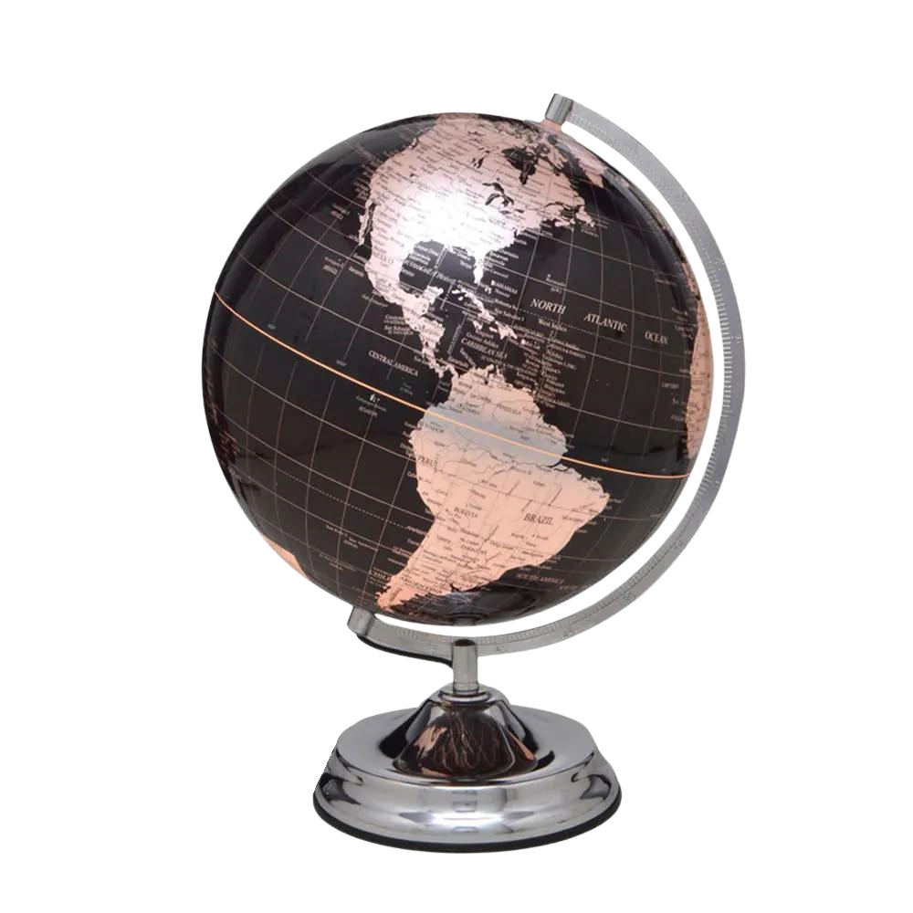 Globo Terrestre Decorativo Preto e Prata com Luz