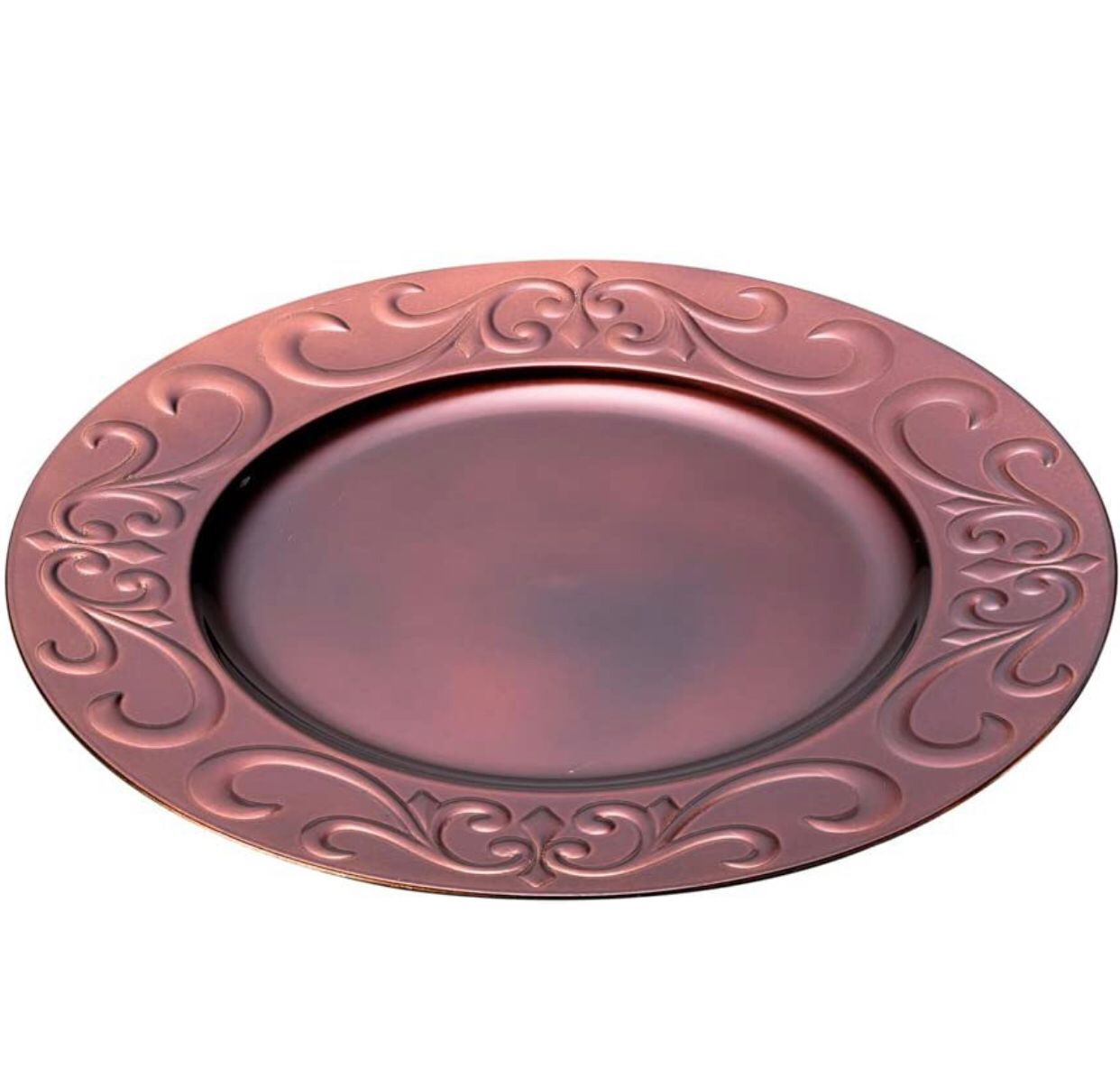 Sousplat de Plástico Garden. Experiências inesquecíveis em almoços, jantares, casamentos e festas de final de ano! Ideal para para momentos especiais ou até mesmo no dia a dia o sousplat é item imprescindível para amantes de elegância e sofisticação Material : Plastico Medidas: 33 xm Vendido por unidade! Cor: Terracota com detalhes em Arabescos na Borda!