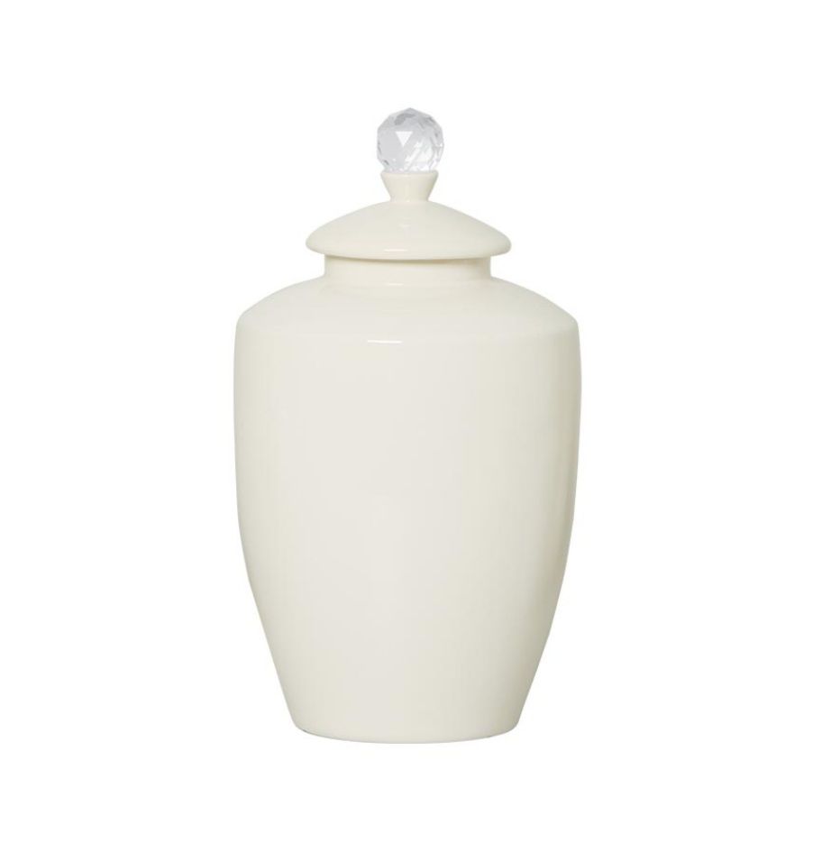 Vaso com Tampa Cristal Off White, para compor com sofisticação e Beleza a sua Decoração.