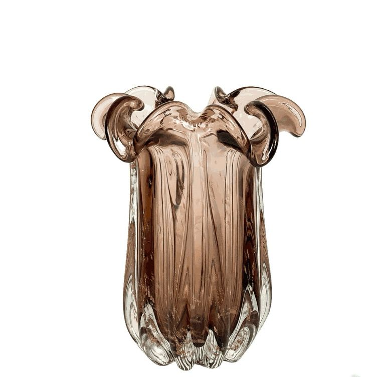 Vaso De Vidro Murano Flat Italy Purpura e Rose 17X21CM
