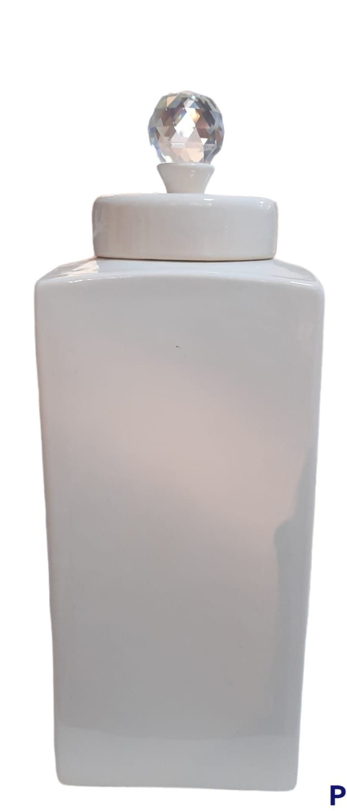 Vaso Pote Cerâmica GrandeOasis Liso Off com Tampa Cristal